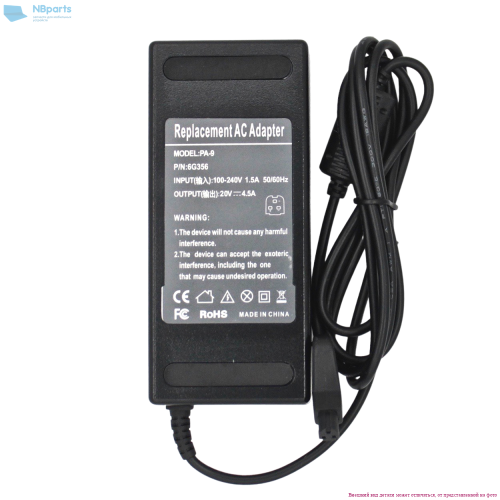 Зарядное устройство для ноутбука 90W, 20V 4.5A, разъём Подкова (3-Pin Square Tip), копия без сетевого кабеля партномер 6G356, , полностью совместимо с указанными моделями ноутбуков и отвечает заявленным характеристикам. Гарантия месяцев.