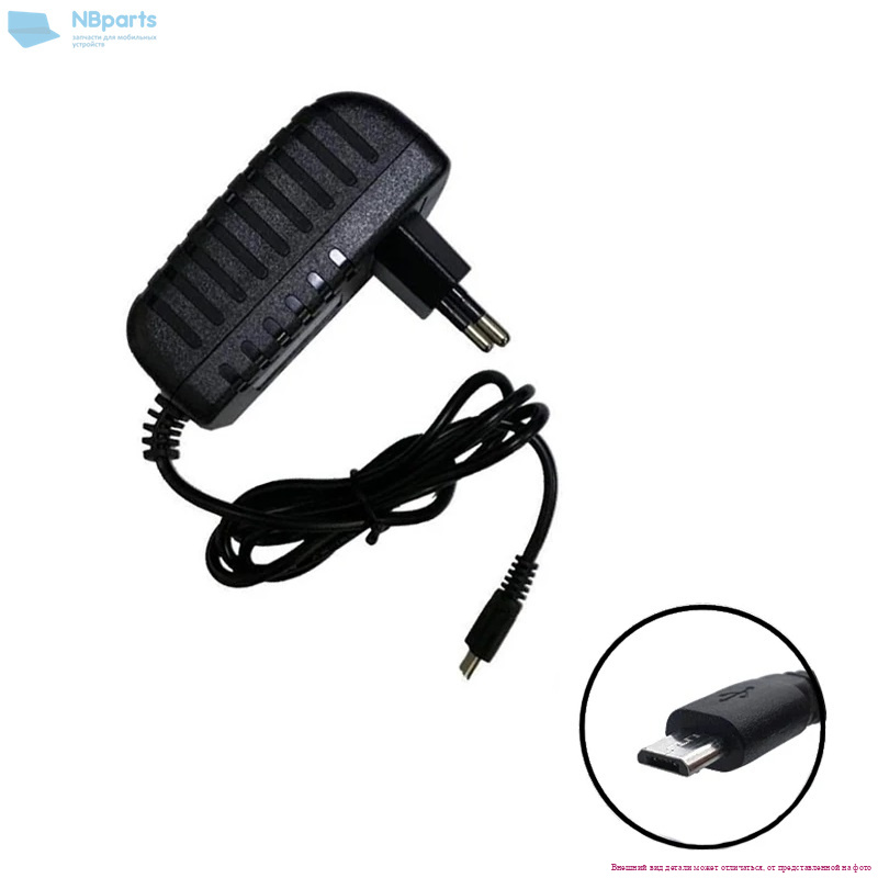 Блок питания (зарядное устройство) для телефона China 10W, 5V 2A, micro USB, 10W-USB Black, копия с сетевым кабелем