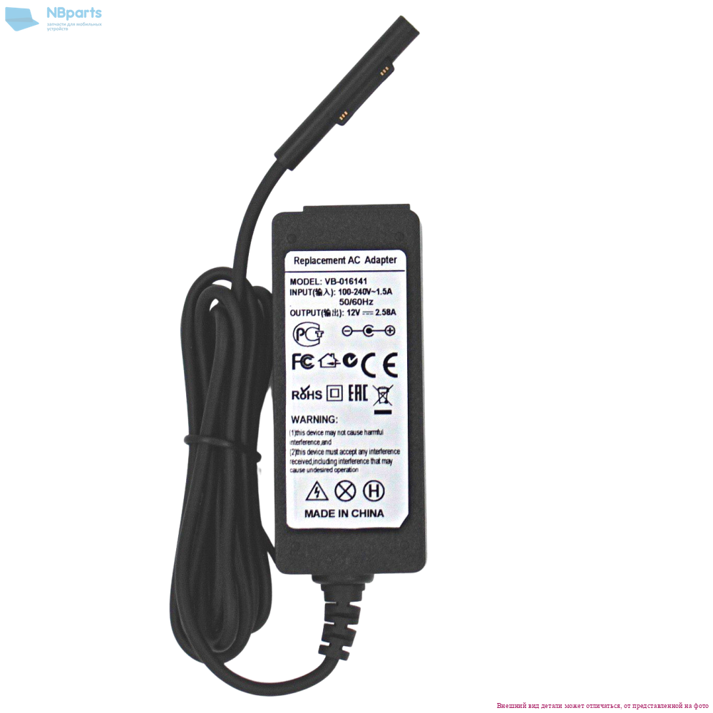 Блок питания (зарядное устройство) для планшета Microsoft Surface Pro 3, Pro 4, 30W, 12V 2.58A, копия без сетевого кабеля