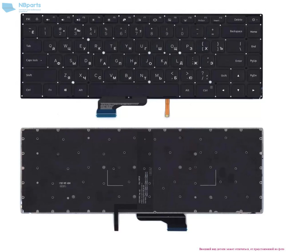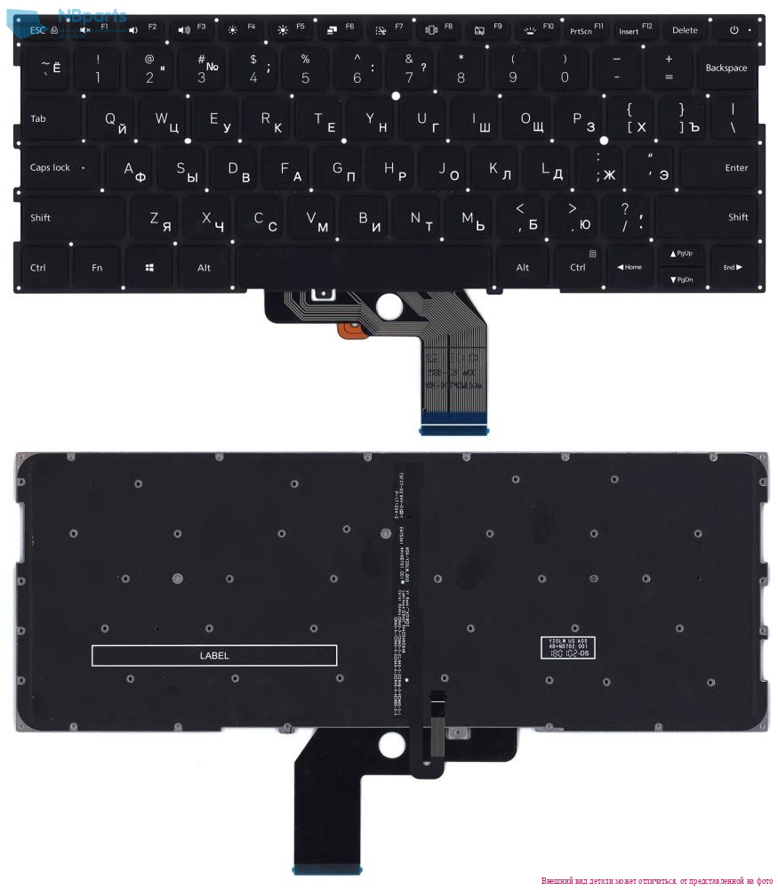 Клавиатура для ноутбука Xiaomi RedmiBook Pro 14 XMA2008, чёрная, с подсветкой, RU (NB)