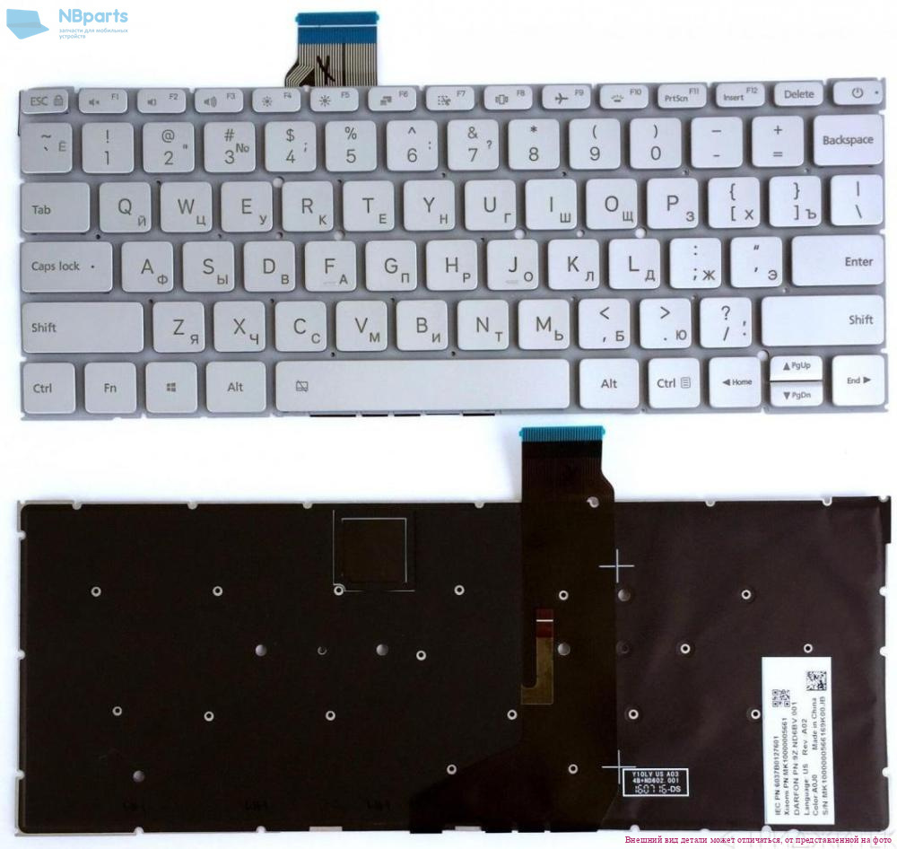 Клавиатура для ноутбука Xiaomi Air 12.5", серебро, с подсветкой, RU